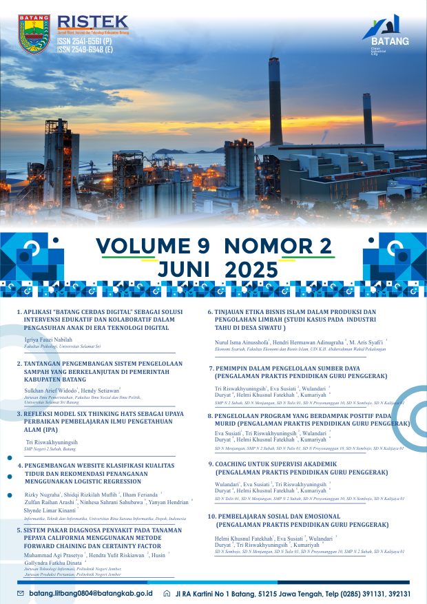 Dan berikut adalah Jurnal RISTEK: Jurnal Riset, Inovasi dan Teknologi Kabupaten Batang Volume 9 No 2 Tahun 2025